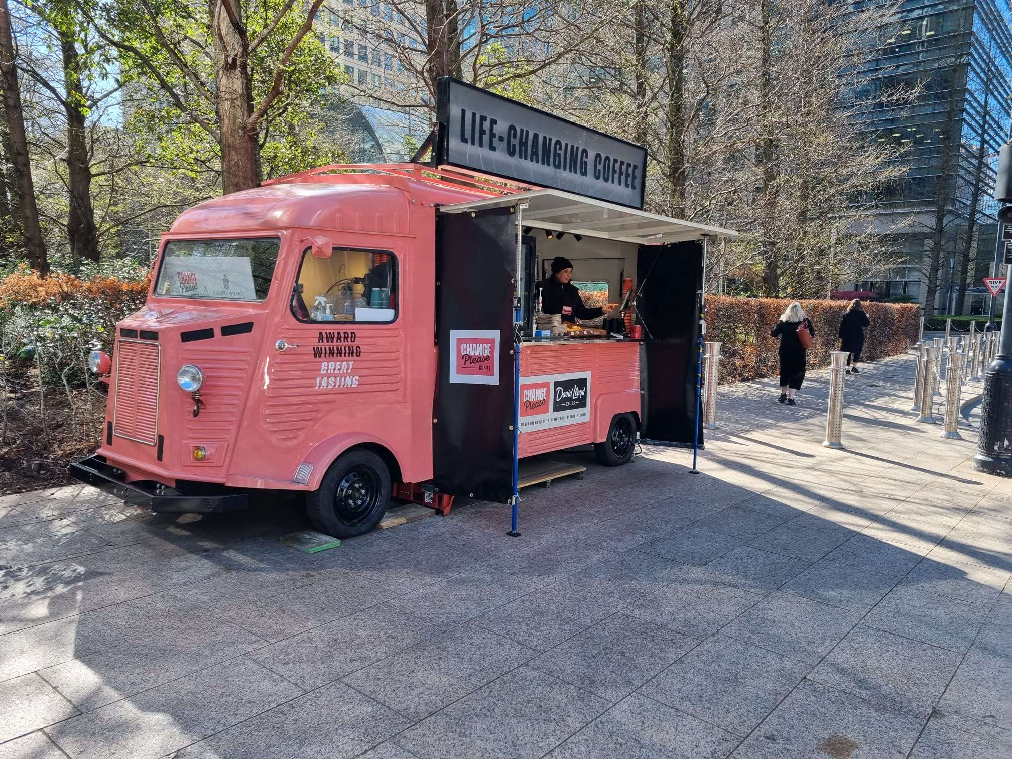 Zum Bild: Der Bus stand an einer U-Bahn-Station in London und bot Lifechanging Coffee an.